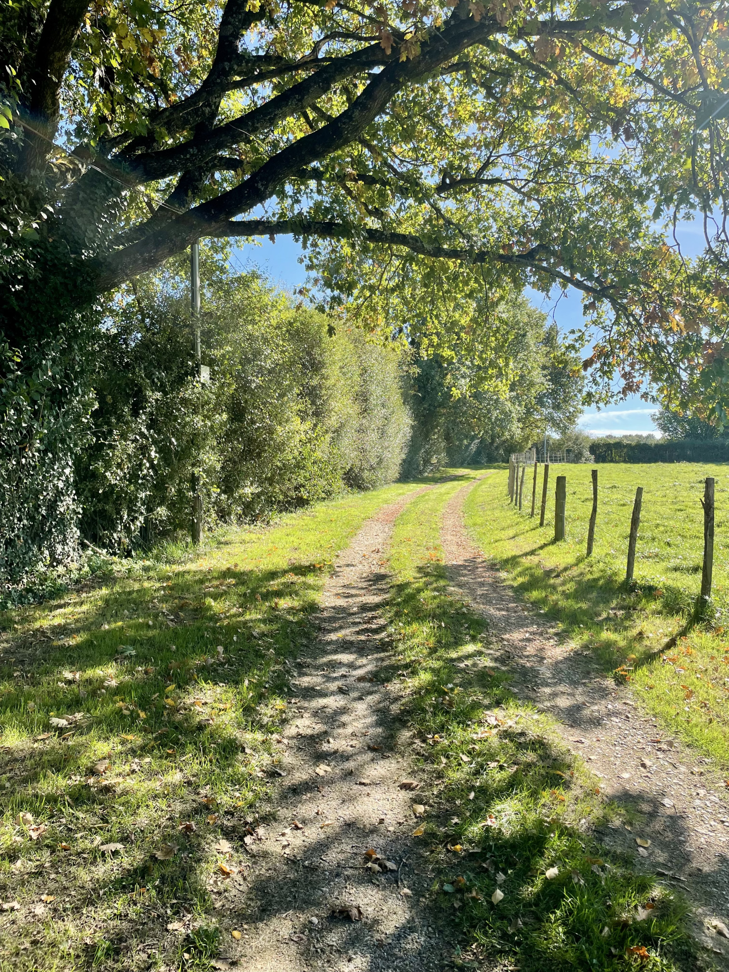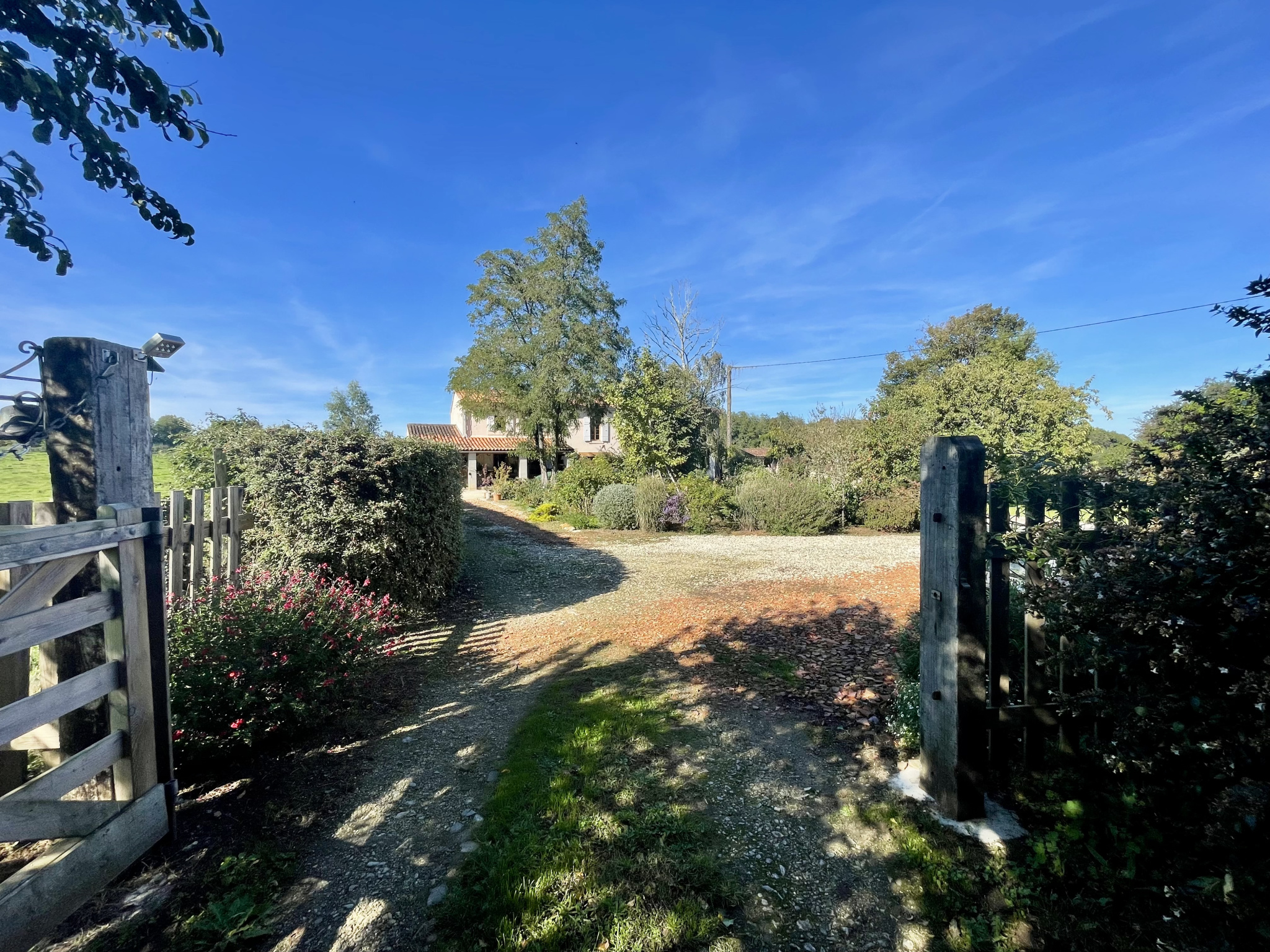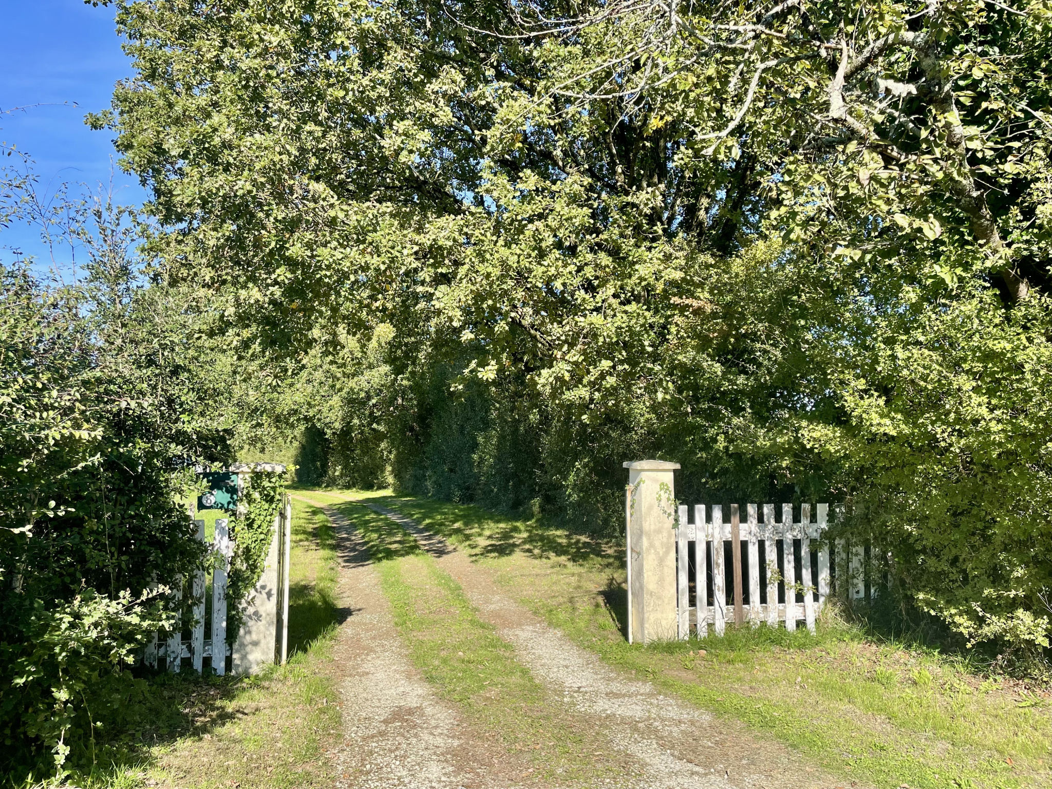 L’accès à la propriété se fait par un chemin privatif bordé d’une haie.