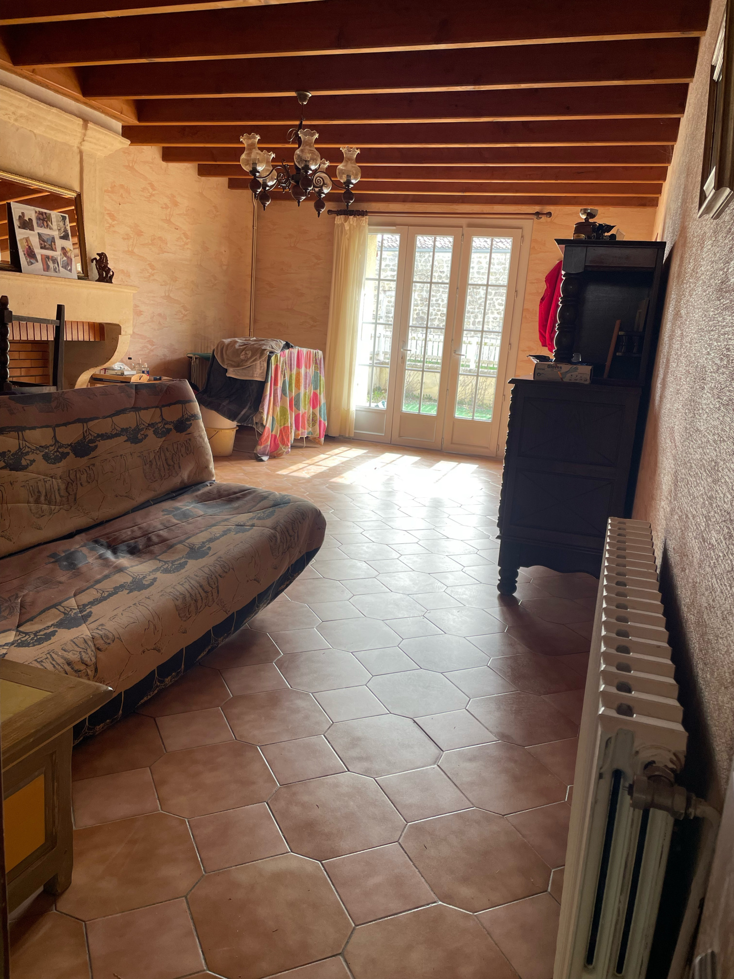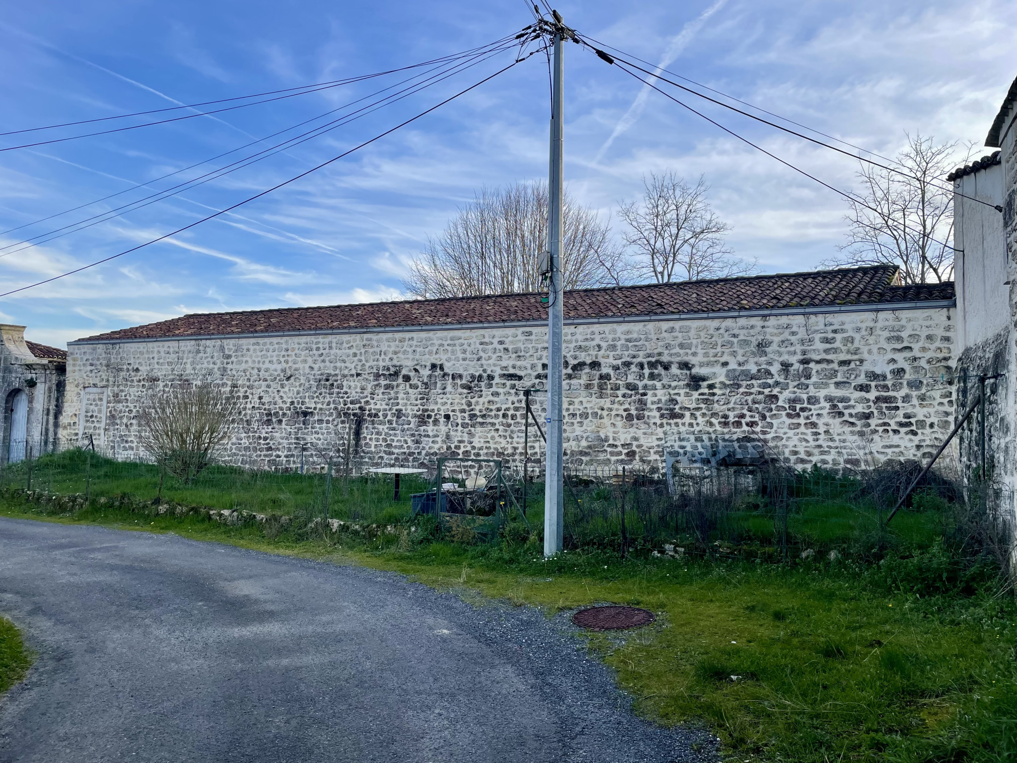 En ce qui concerne l’extérieur, vous bénéficierez d’une cour devant la maison exposée plein sud, d’une parcelle de jardin de l’autre côté de la rue avec un puits et d’une place de stationnement fermée par un portail.