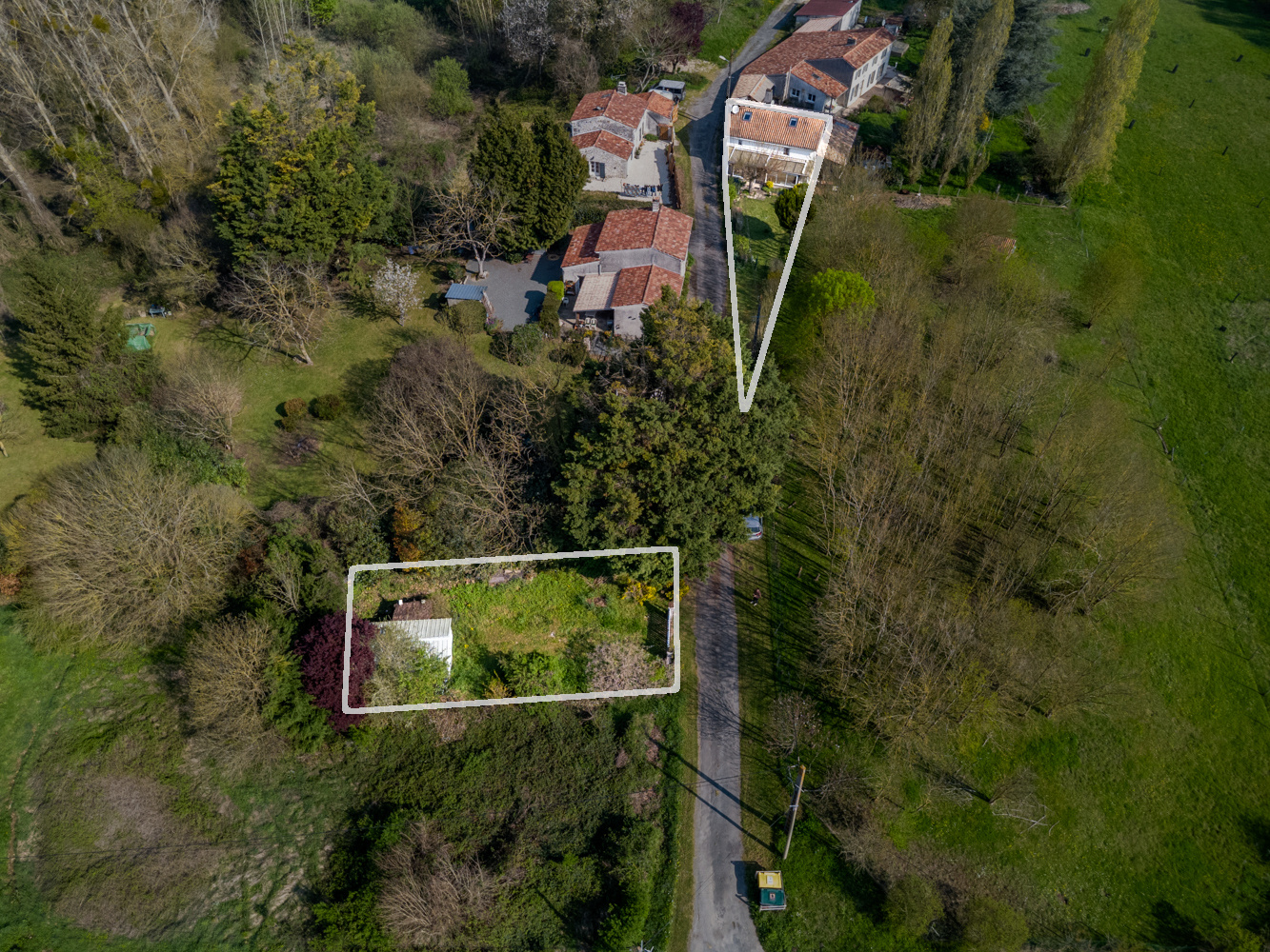 L’ensemble est implanté sur deux parcelles distinctes : une première parcelle de 250 m2 sur laquelle se situe la maison, et une seconde parcelle non attenante de 290 m2, située à environ 50 mètres, sur laquelle se trouve le garage avec un terrain pour un potentiel potager ou verger par exemple.