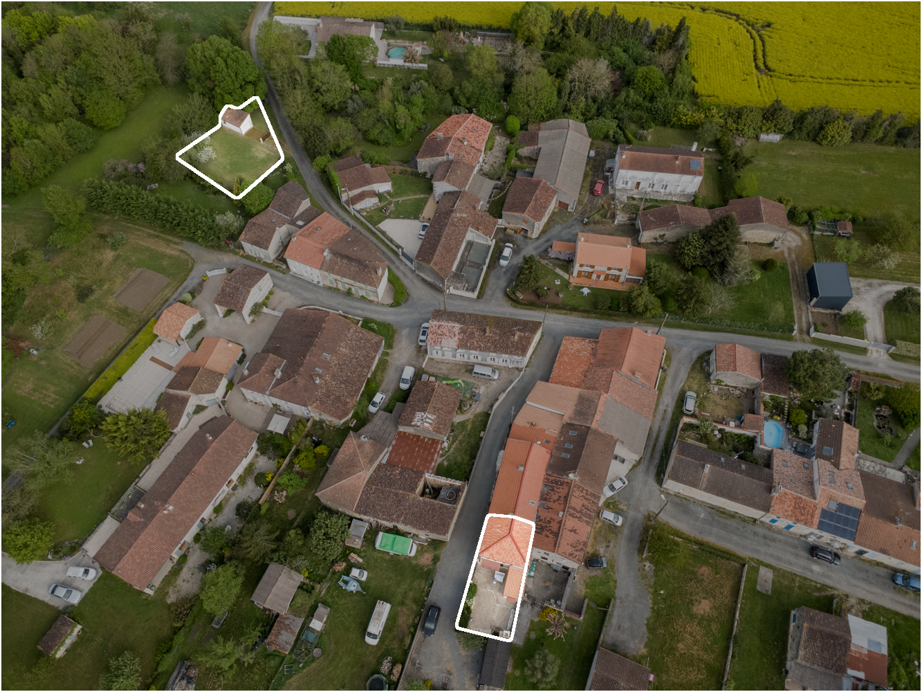 Côté extérieur, la propriété se compose de deux parcelles cadastrales distinctes :