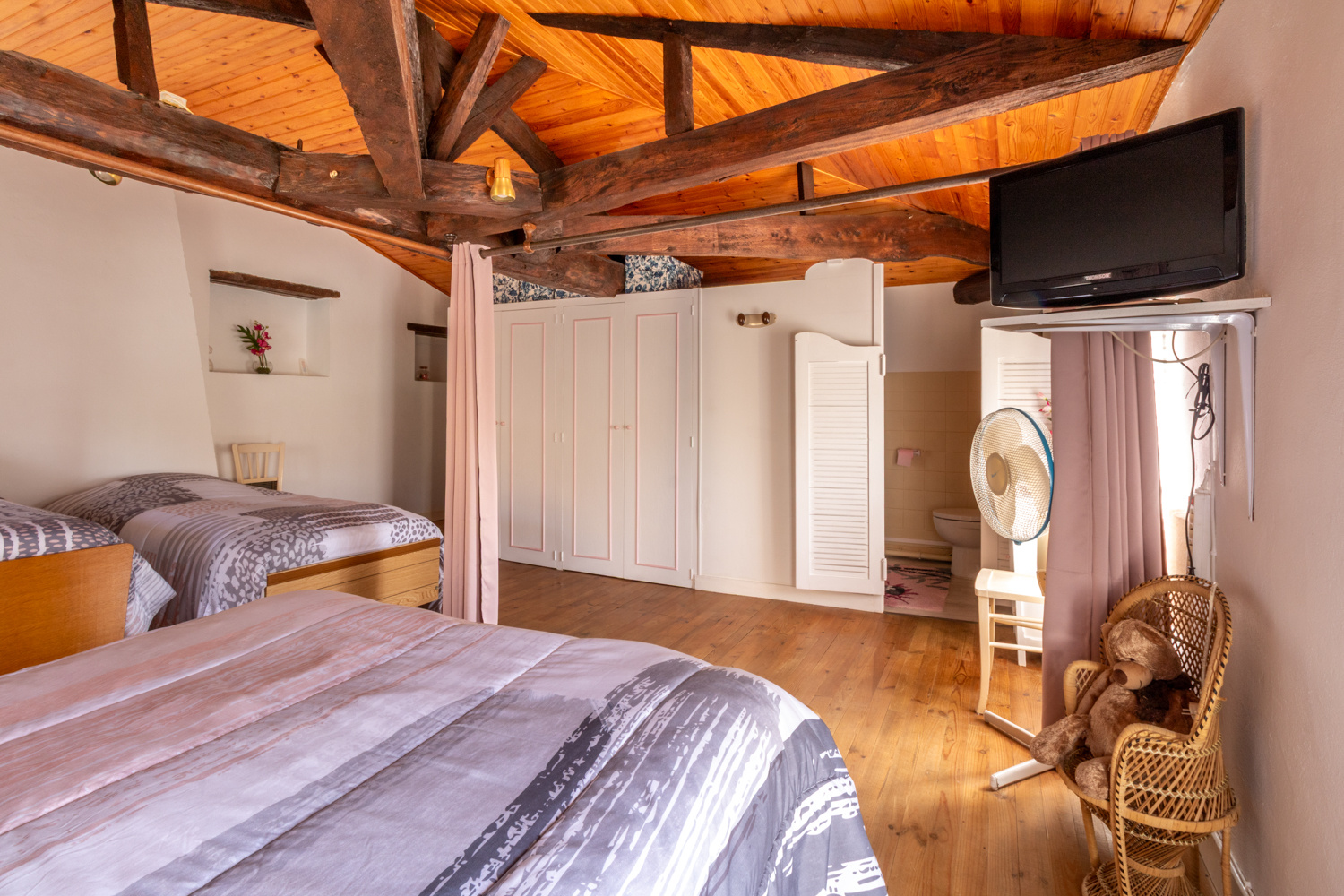 À l’étage, vous découvrirez une chambre avec placard (28 m2) ainsi qu’une salle d’eau avec WC. La présence de trois fenêtres offre la possibilité de repenser l’espace et de créer un second coin nuit ou un bureau selon vos besoins.