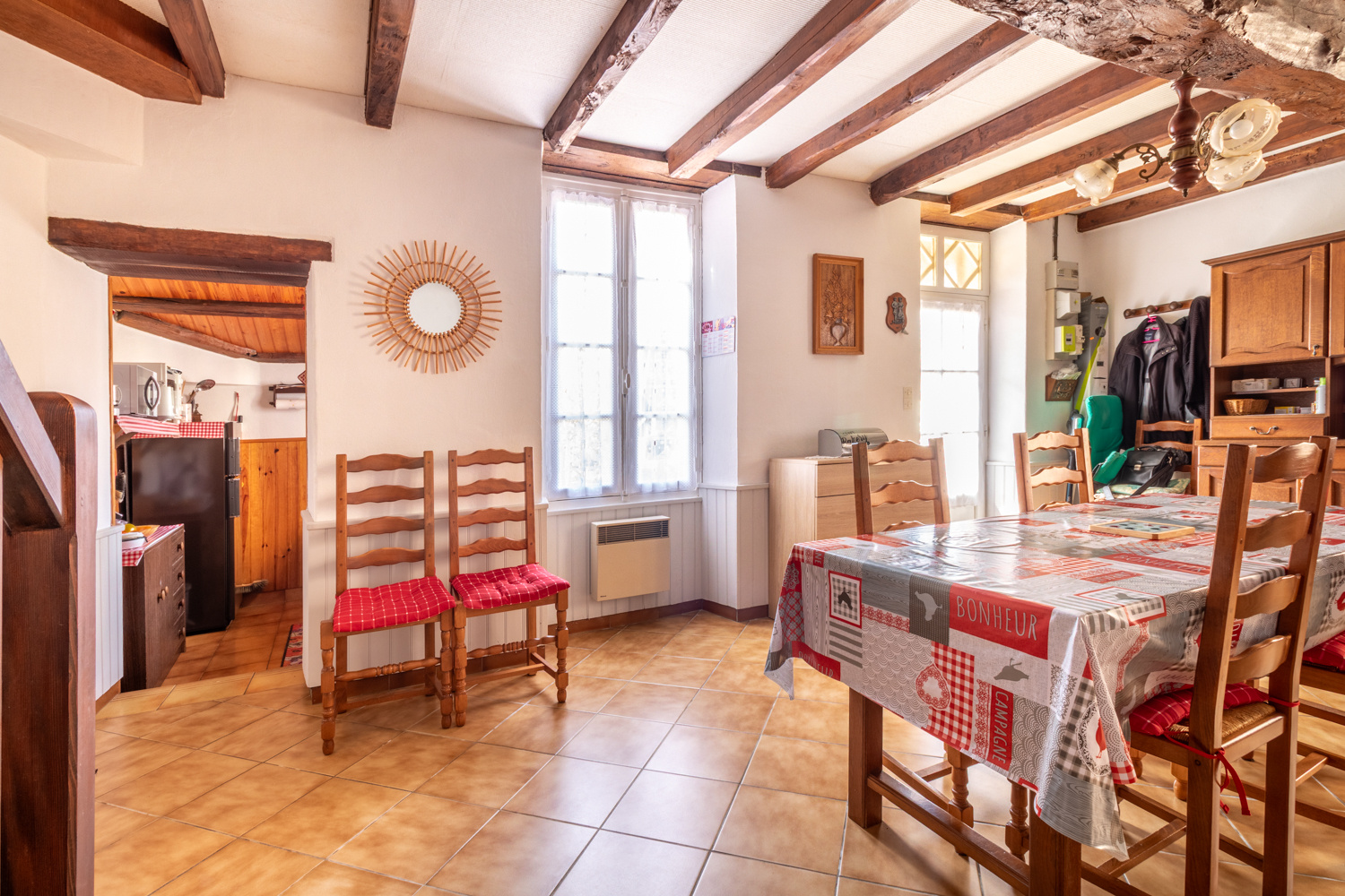 Le bien est équipé d’un chauffage électrique et d’une cheminée à foyer ouvert. La toiture, en tuiles mécaniques, a été entretenue et est en bon état.